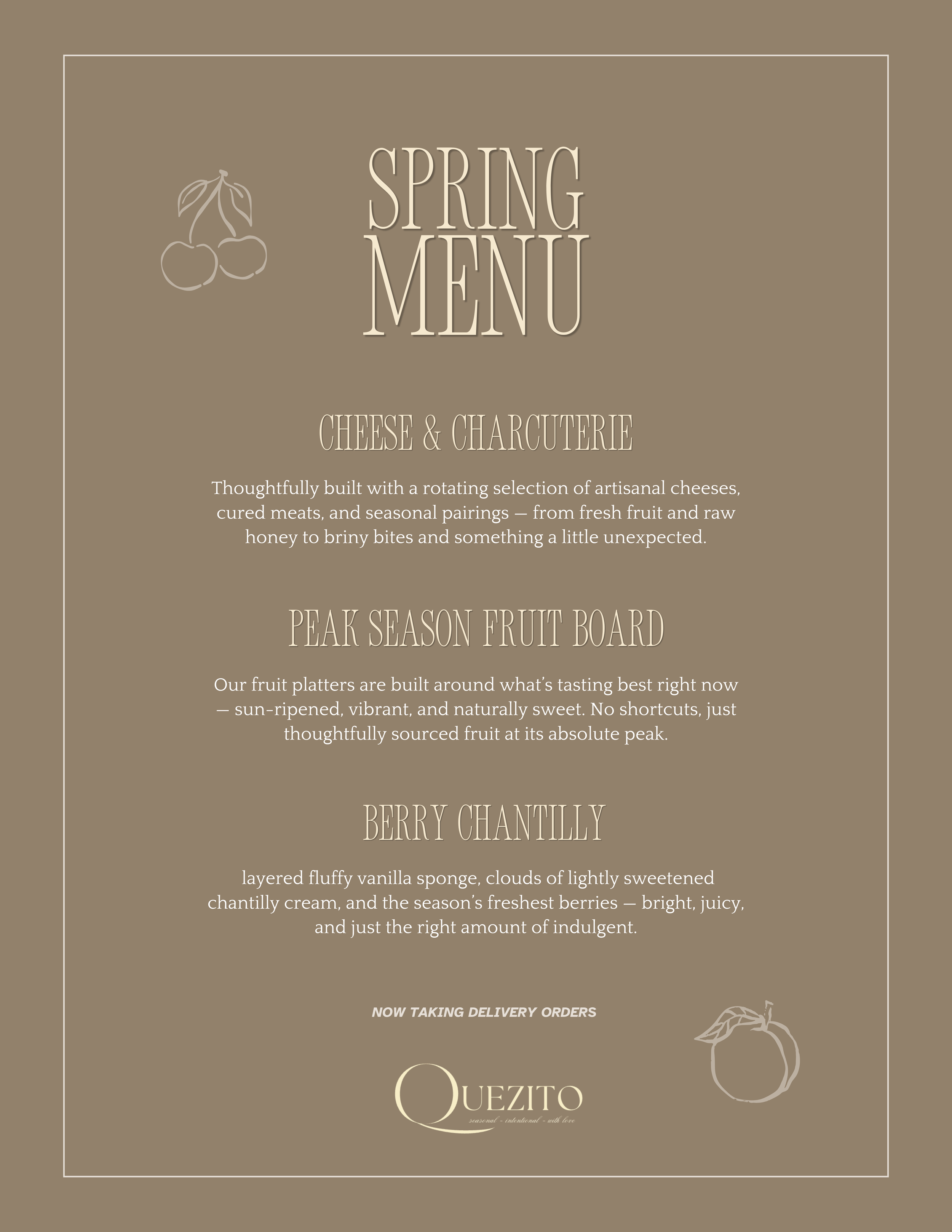 We also might've swapped a letter to tie it back to my last name, Quezada, which makes it extra personal. Quezito is where seasonality, craft, and community meet, and where cheese is always at the center.